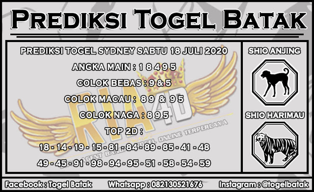PREDIKSI SYDNEY SABTU 18 JULI 2020 PREDIKSI TOGEL BATAK TOGEL